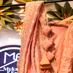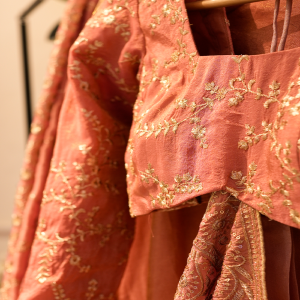 This Peach Pink Embroidered Lehenga Set is crafted with premium silk-blend fabric featuring intricate golden thread work. The finely detailed dupatta with tassels and the stylish embroidered blouse create a luxurious ethnic look. Designed for weddings, festive events, and special celebrations, this lehenga offers a graceful fall, rich texture, and comfortable wear throughout the day.
