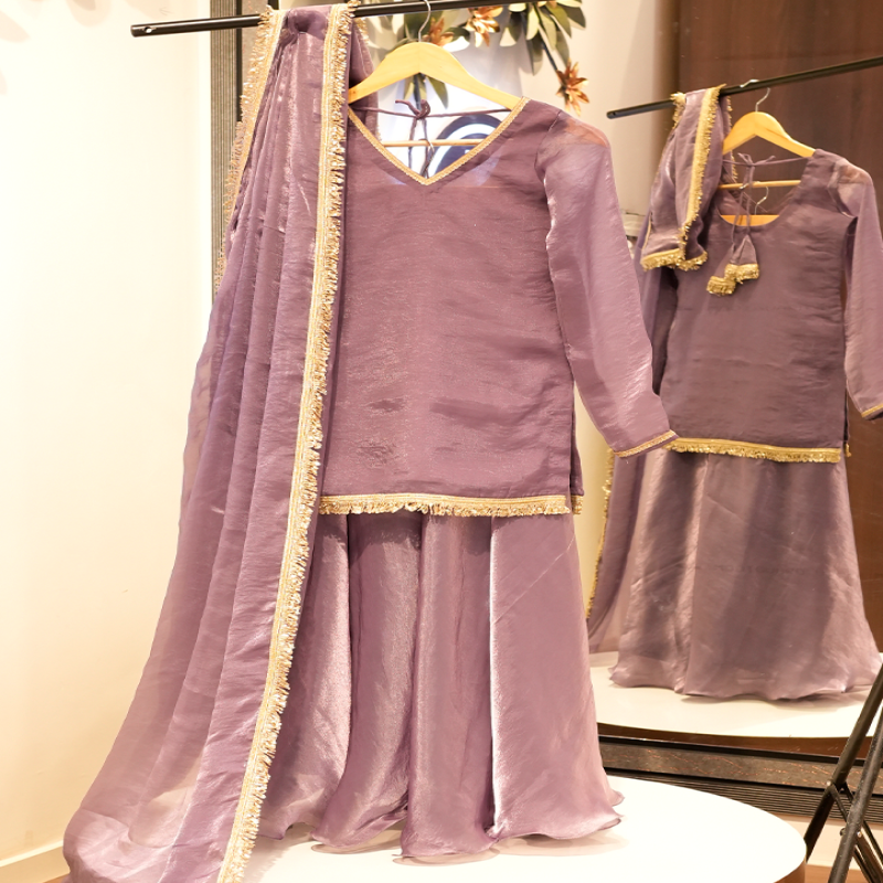 This elegant Plazzo Suit Set features a stylish kurti paired with comfortable, flowy plazzo bottoms. Crafted from soft, breathable fabric, the set offers a perfect blend of modern comfort and traditional charm. Its rich texture, refined detailing, and versatile design make it ideal for festive occasions, casual outings, and everyday wear.