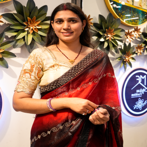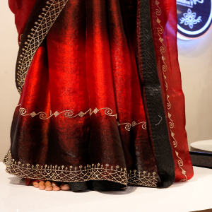 The deep maroon shade gives a royal and graceful appearance, making it suitable for weddings, parties, festivals, and evening functions. Crafted with attention to detail, this saree drapes effortlessly and highlights timeless elegance with a modern touch. A perfect choice for women who love classic colors with stylish embellishments.