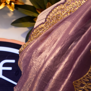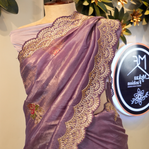 Add a touch of royal elegance to your ethnic collection with this stunning purple saree, beautifully adorned with gotta or resham work that enhances its traditional appeal. Designed to offer both grace and sophistication, the intricate detailing brings a rich handcrafted look, making it ideal for festive gatherings, weddings, and special occasions. The saree drapes effortlessly, ensuring a refined and graceful appearance throughout the day.