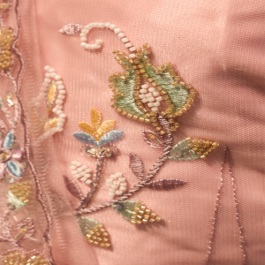 Baby pink colour Radyment Lacha Net fabric Cut dana beeds sequence thread work