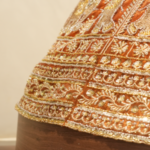 Overall, this lehenga blends cultural motifs, fine craftsmanship, and warm festive colors, making it ideal for weddings, traditional ceremonies, or grand celebratory events.